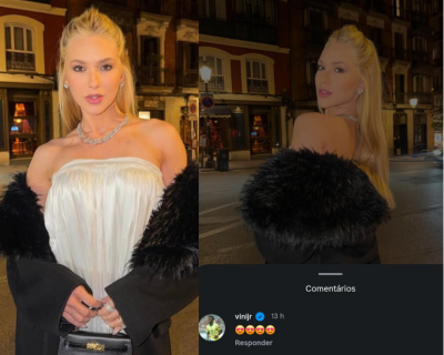 A influenciadora Virginia Fonseca compartilhou nas redes sociais o look escolhido para uma noite em um restaurante renomado na Espanha, acompanhada dos amigos Herbert Gomes e Duda Freire. O namorado, o jogador Vinícius Júnior, atacante do Real Madrid, reagiu à publicação com emojis apaixonados, demonstrando apoio e admiração.